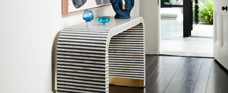 Curved, contemporary and elegant, our striped and shapely Bone Inlay Console presents a fresh update to its traditional predecessor.