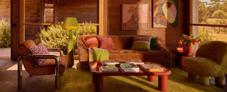 Curated with a sense of nostalgia, the blend of warmly hued tones, rich texture, luxe embellishments and bold shapes intend to invite year round sunshine into your space.