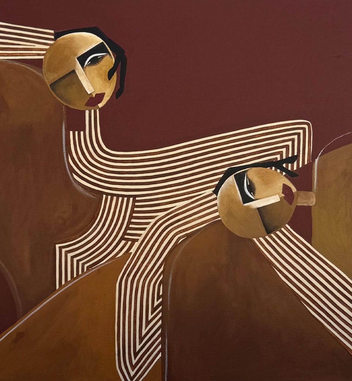 Through her unique style, Psonis creates work that celebrates the female form in all its power, inviting her audience to embark on a journey of introspection and discovery. Psonis primarily plays with mixed mediums including acrylic, pencil and gesso to produce work that explores the relationship between soft and hard or masculine and feminine, works that command presence.