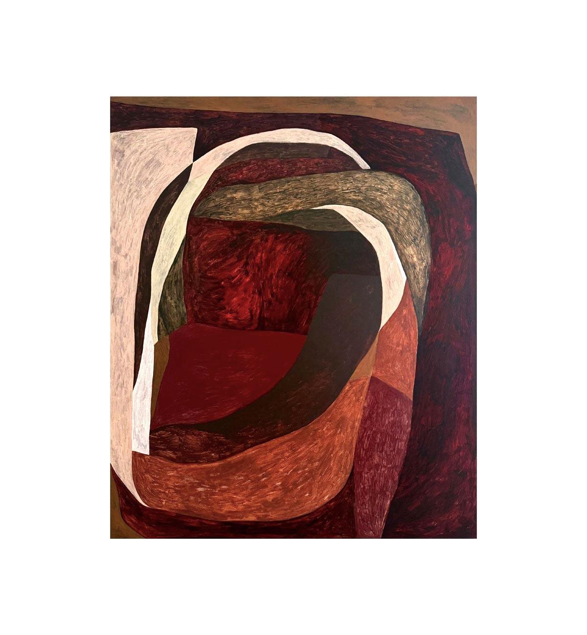 Rooted in earthy, raw and grounded colour palettes, Bradford’s practice explores space and shape through a mix of drawing, textiles, and mixed media. Her compositions are instinctive and emotive - where symbols of childhood to adulthood become visual anchors for memory, connection, and inner landscapes. Bradford’s work navigates the push and pull between stillness and movement, solitude and belonging. It’s art that feels lived-in - honest, physical, and quietly powerful.