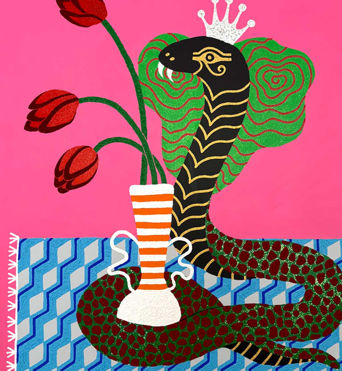 Suizu is a self taught painter with a background in interior design. Her art reflects her spirit for travel and takes influence from Latin American Folk Art, Pop Art & Psychedelica.