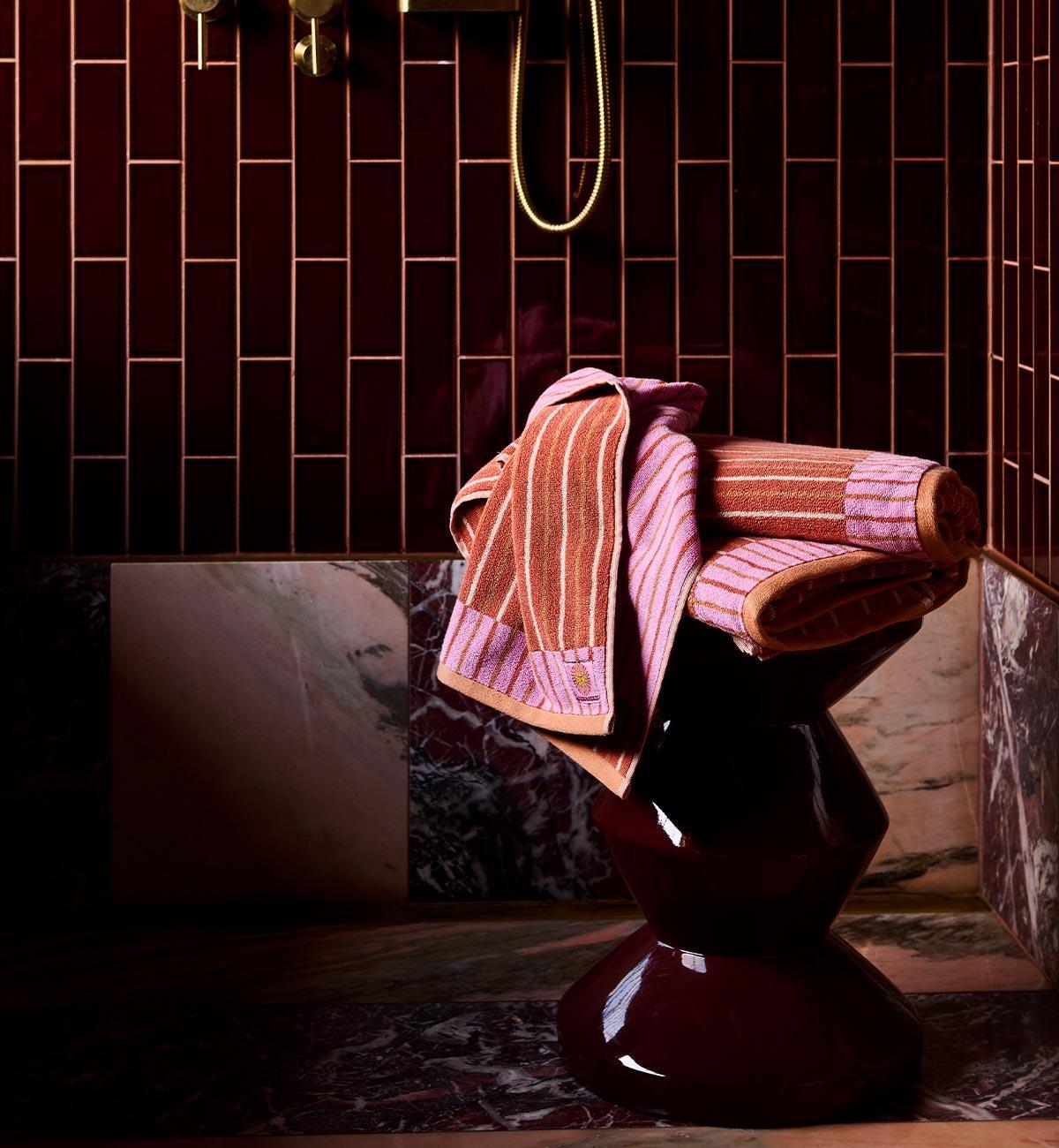 Designed for slow mornings and sun-drenched rituals, the Ola Bath Towel is ultra-soft and reversible, bringing a playful twist to everyday drying off. Available in two spa-inspired colourways, Pink Clay and Verde, it wraps you in comfort and colour.