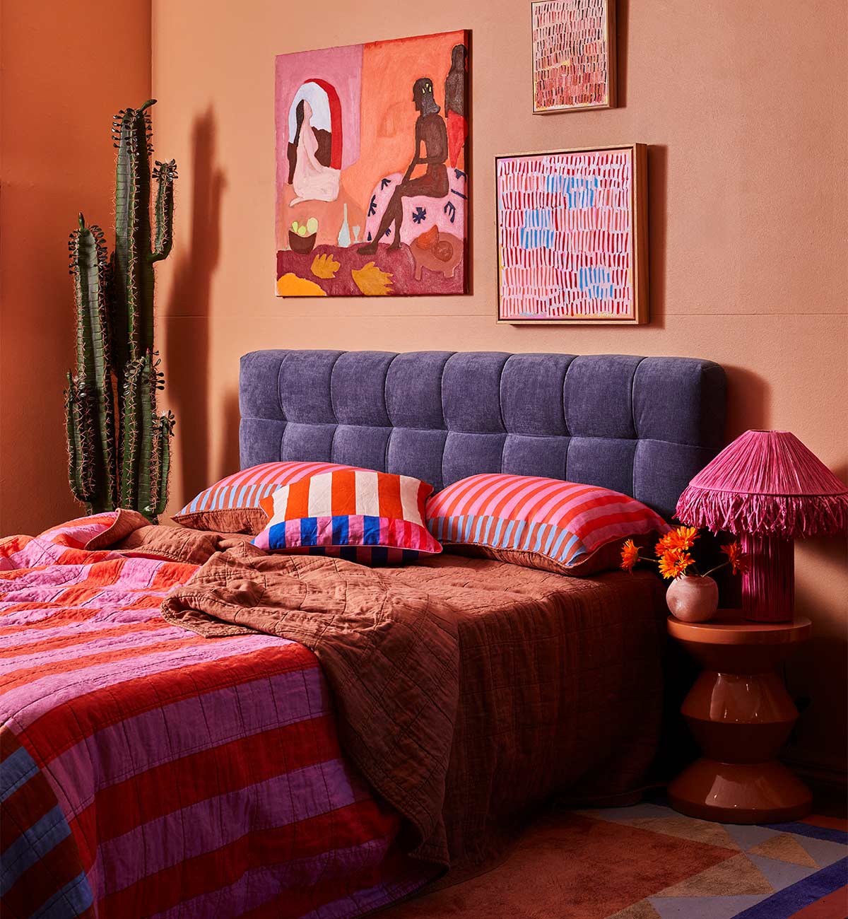 As the name suggests, the Marshmallow Bedhead is soft and squishy, making for a comfy backdrop to your slumber zone. Constructed with a solid timber frame and finished with generous padding, she’ll add layers of texture and warmth to your bedroom.