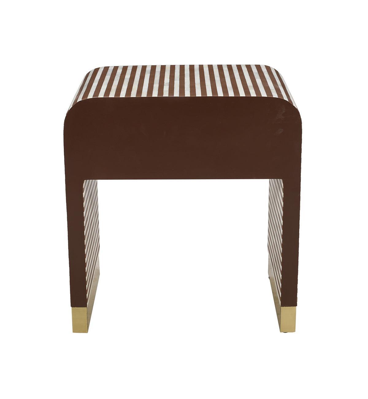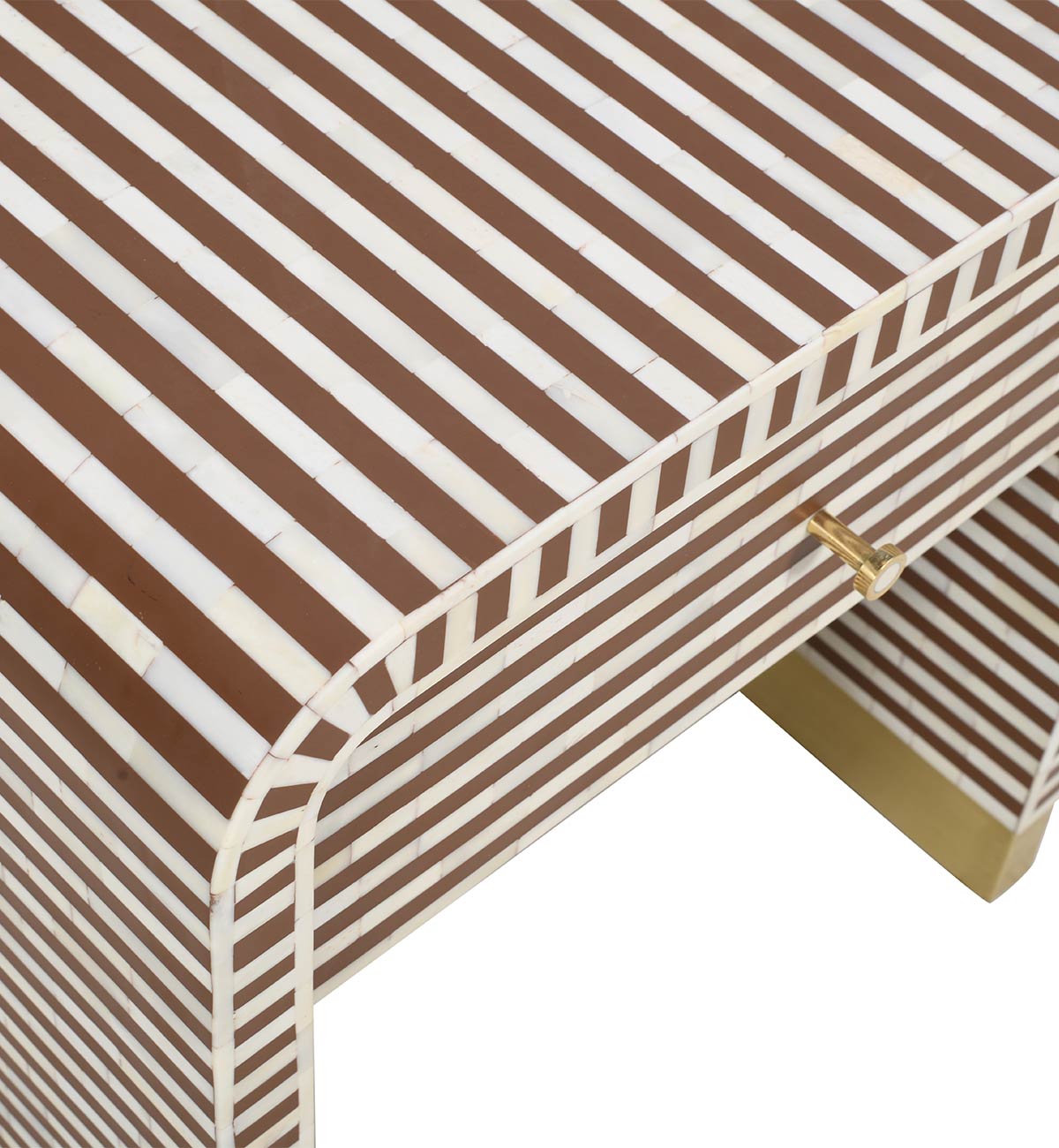 Bone Inlay 1-drawer Curved Bedside In Chocolate