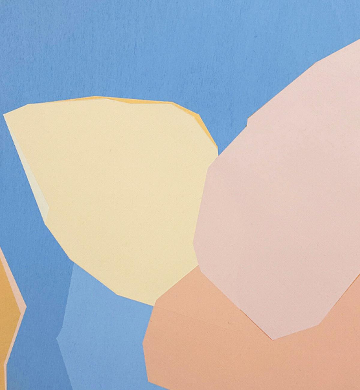 Ross' abstract works are a response to organic forms, in particular the evolving shadow patterns seen in the natural environment. Nature’s ever-changing designs created by light, movement and time inspire multi-layered compositions of vividly coloured shapes.