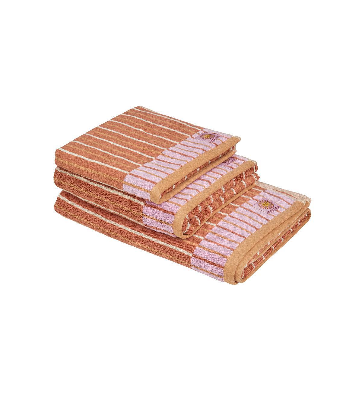 The Ola Towel Bundle includes two plush bath towels, two coordinating hand towels, and a soft, reversible bath mat. Made from ultra-soft cotton and available in Pink Clay or Verde, this set brings a touch of sunshine and spa-like comfort to your bathroom, beach bag, or weekend escape.