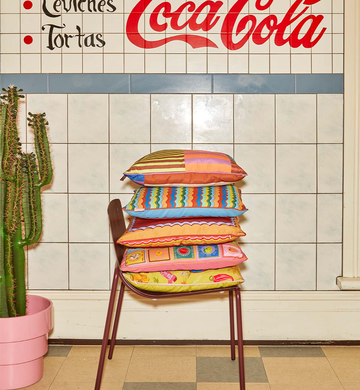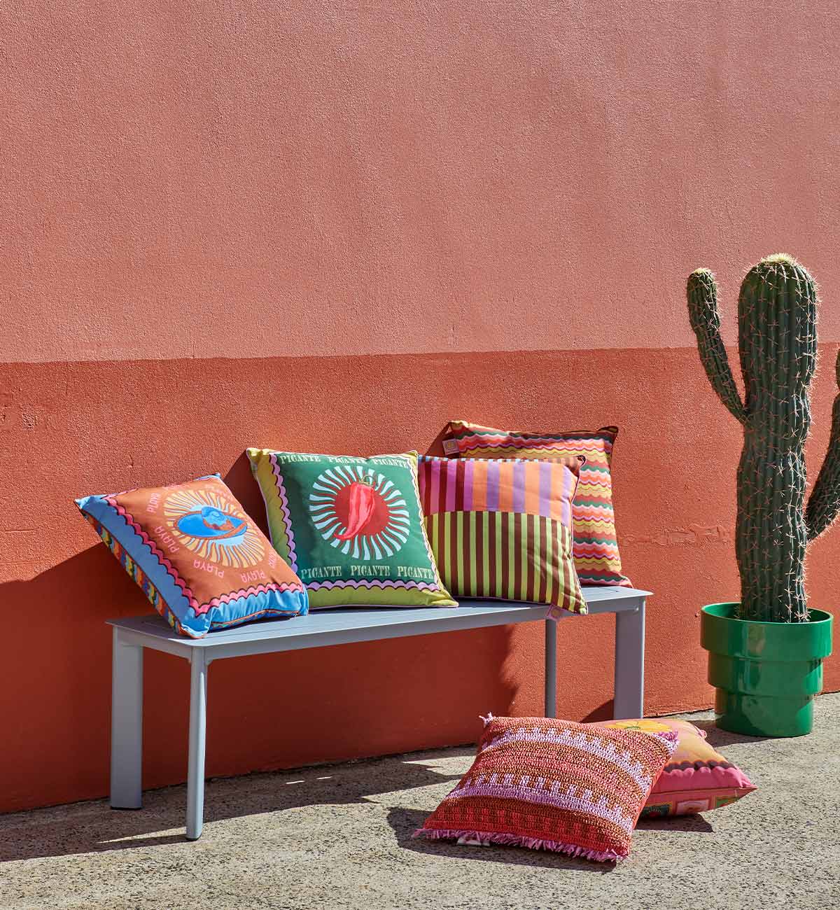 Bold prints, sun-soaked colours, and a playful spirit - our Ola Mexicola Outdoor Cushion collection is made for mixing, matching, and making a statement. From retro stripes to graphic florals and vibrant motifs, each design brings a touch of Mexican-inspired joy to garden settings, poolside lounges, and alfresco dining spaces. Crafted from durable, outdoor-friendly fabric, they’re designed to withstand the elements while bringing fun, colour, and comfort to your outdoor living. Layer them up, clash your prints, and create a setting that’s as vibrant and inviting as a summer fiesta.