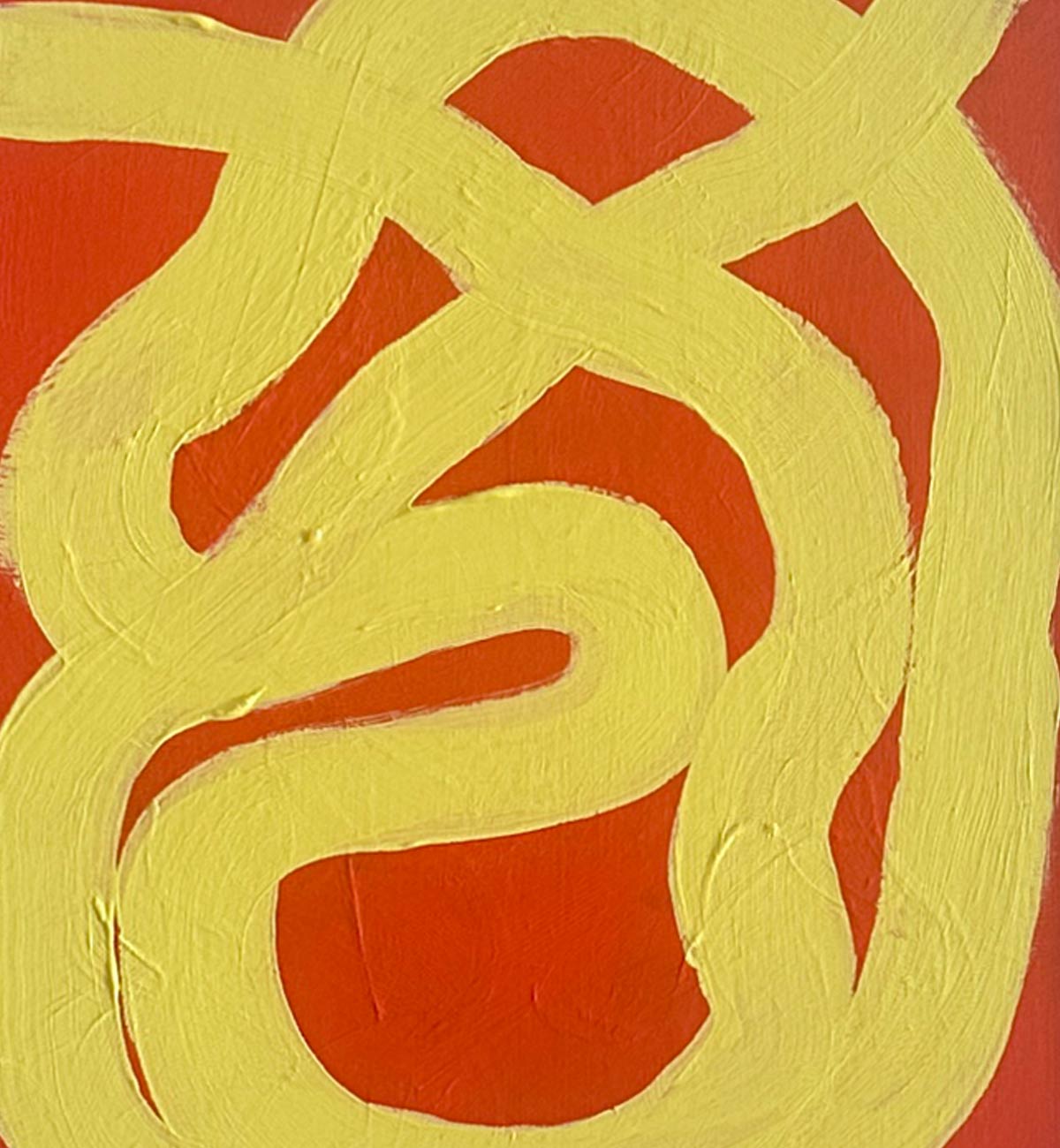 Ellie's visceral artworks are made up of a language of bold geometries and chromatic compositions. Inspired by observations from life, she translates her ideas into an intuitive world of layered fields of colour echoing place and memory.
