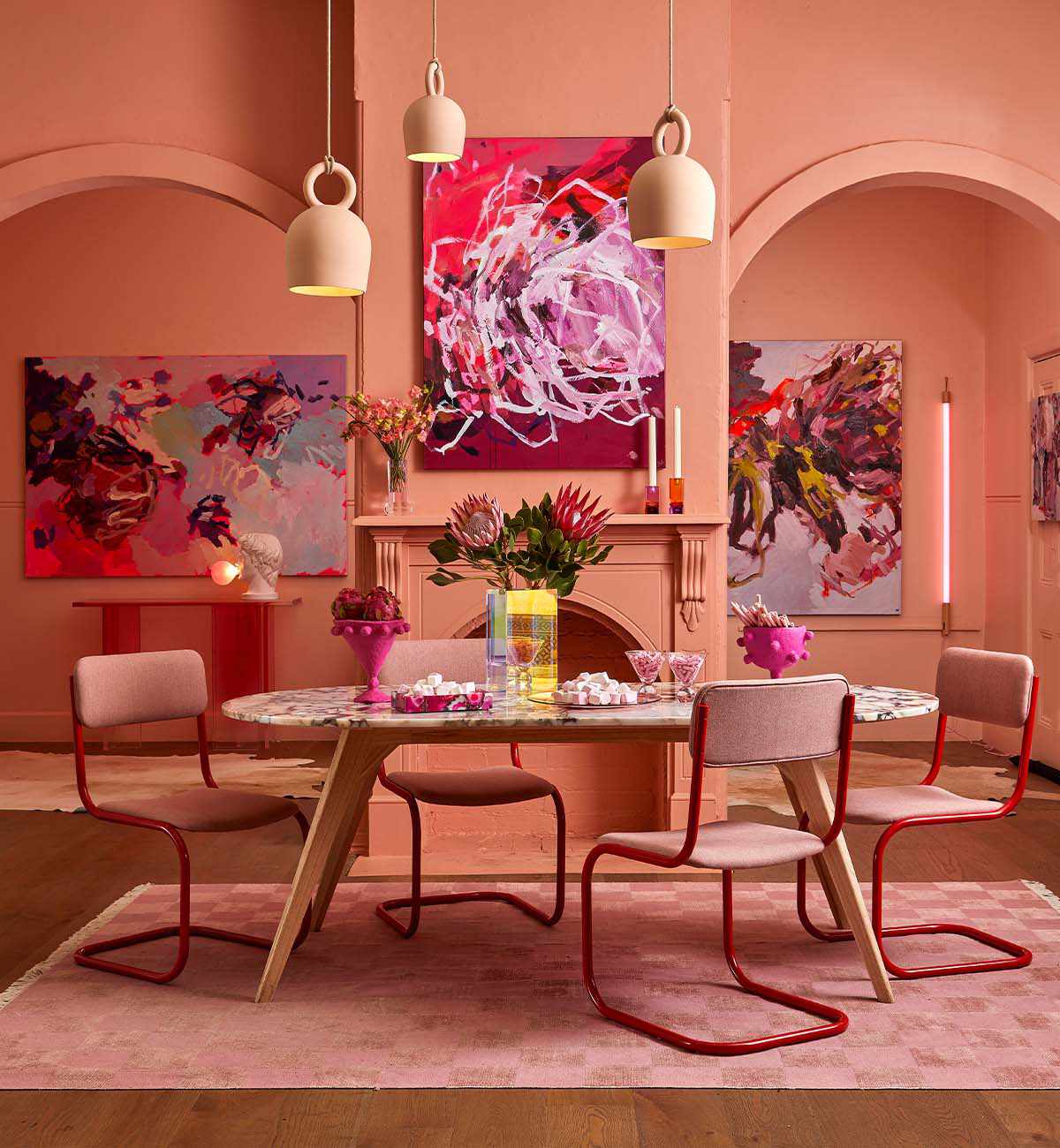 Introduce a modernist aesthetic to your home with the Strut Dining Chair. Strut’s red metal cantilever frame and durable rose coloured upholstery make for a design-led dining room. Get ready to serve up style.