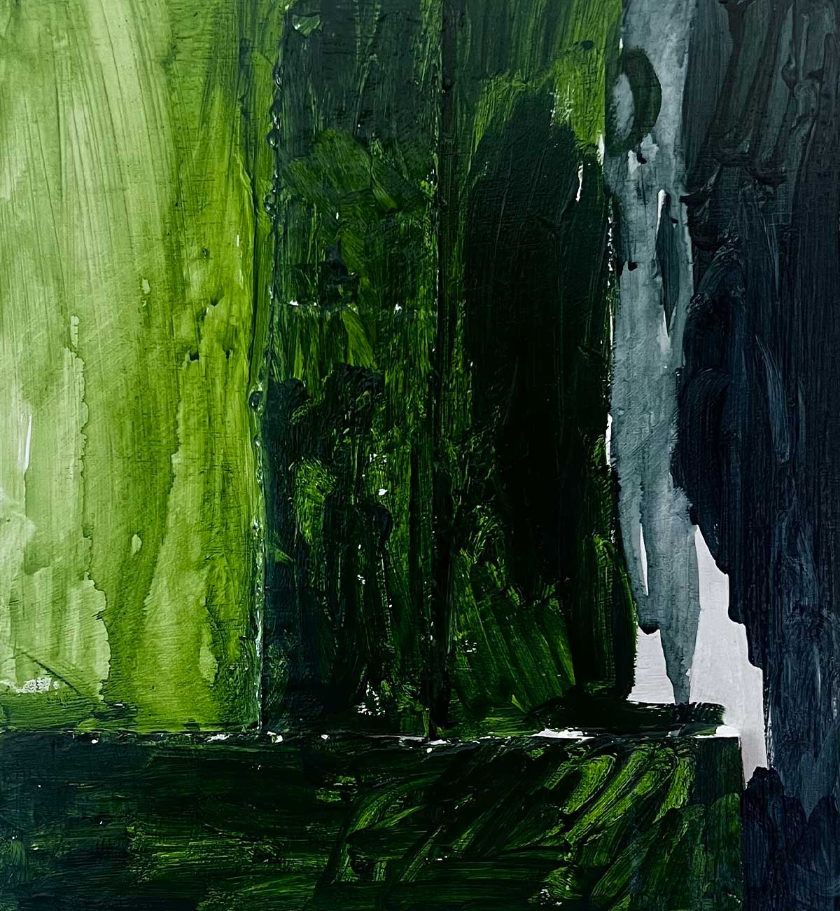The Forest Collection emerged in the middle of spring, a time when I had never felt so much green surrounding me. I breathed it in - clean, fresh, alive. From my studio window, the long grass and trees glowed into my space, and without thinking, I began to paint and draw. It felt like a kind of renewal. The days shifted between bright and overcast, the sky often a soft white, and that wild spring wind moving through everything.