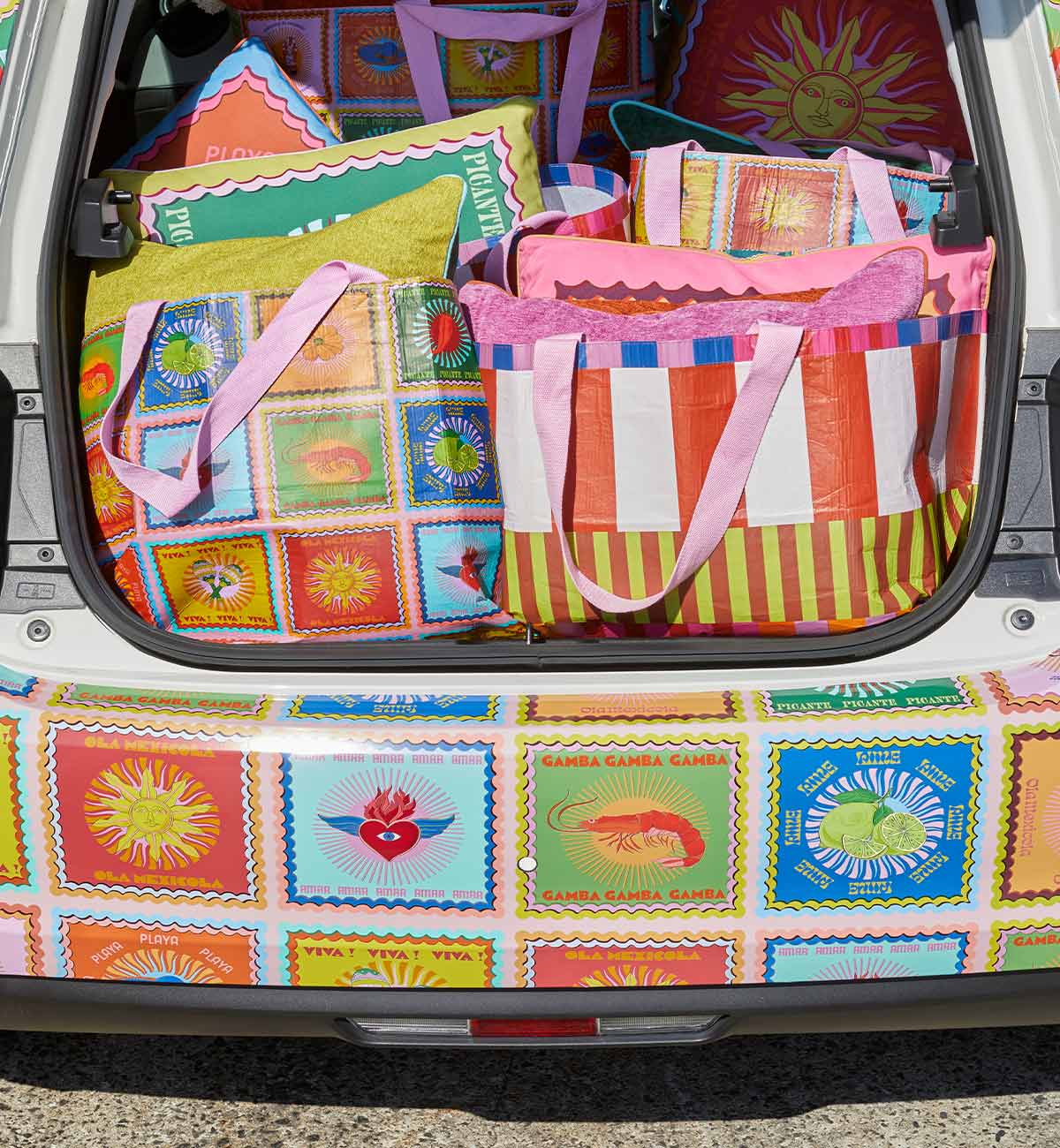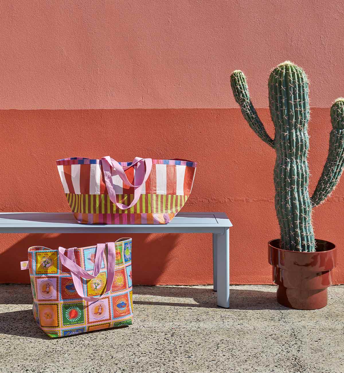 Channel the stripe-loving, sun-seeking side of Ola Mexicola with the Las Casas Tote. Bold, clashing stripes in a medley of joyful hues make this beach-friendly bag as fun as it is functional. Made from water-resistant material with roomy proportions and sturdy handles, it’s ready for salty swims, road trips, or hauling the essentials for a long lunch in the sun.