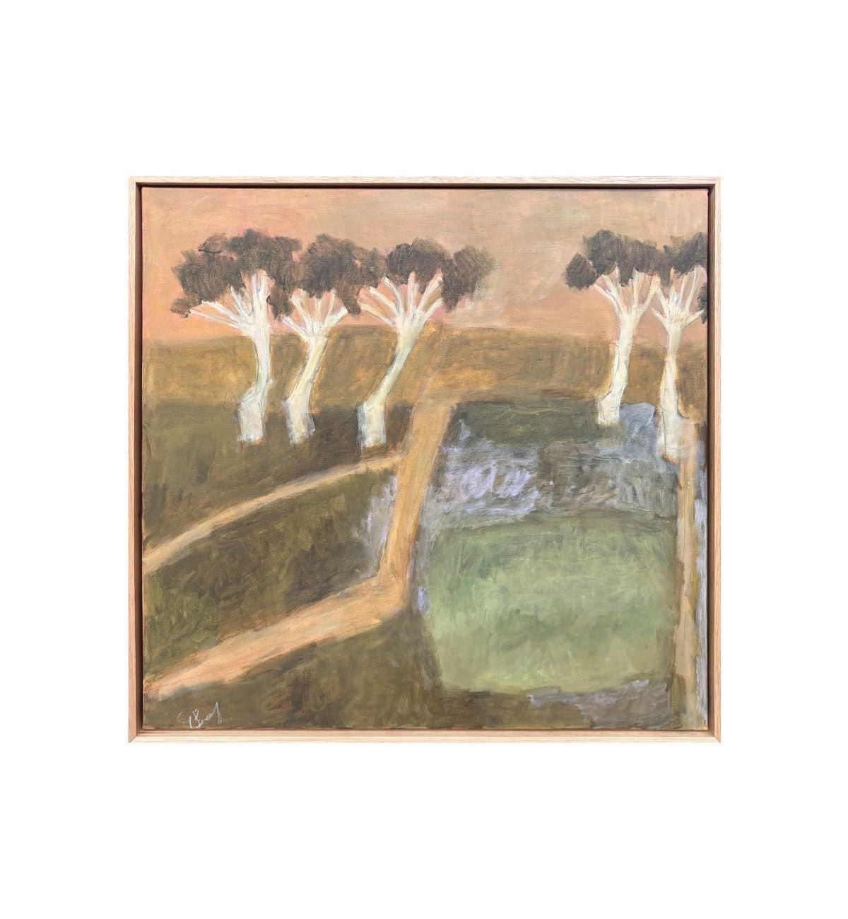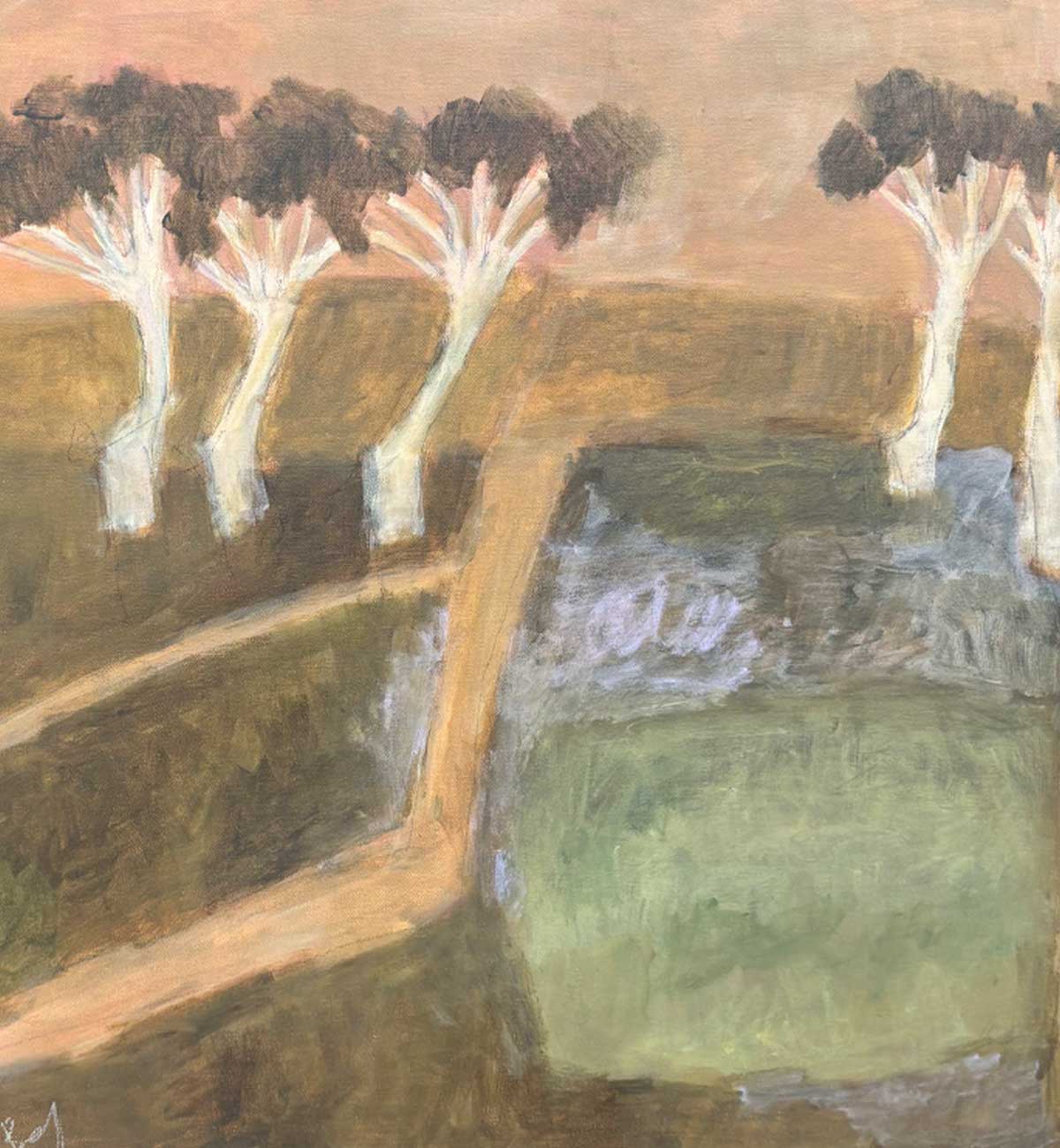Rendered in milky, dirtied-down colour and suffused with the tones of dawn to dusk - the works evoke a drenched landscape, bursting with life and vitality. With skeletal trees and Rothko-like washes, her landscapes blend the known and imagined, guided by a philosophy of art as medicine.