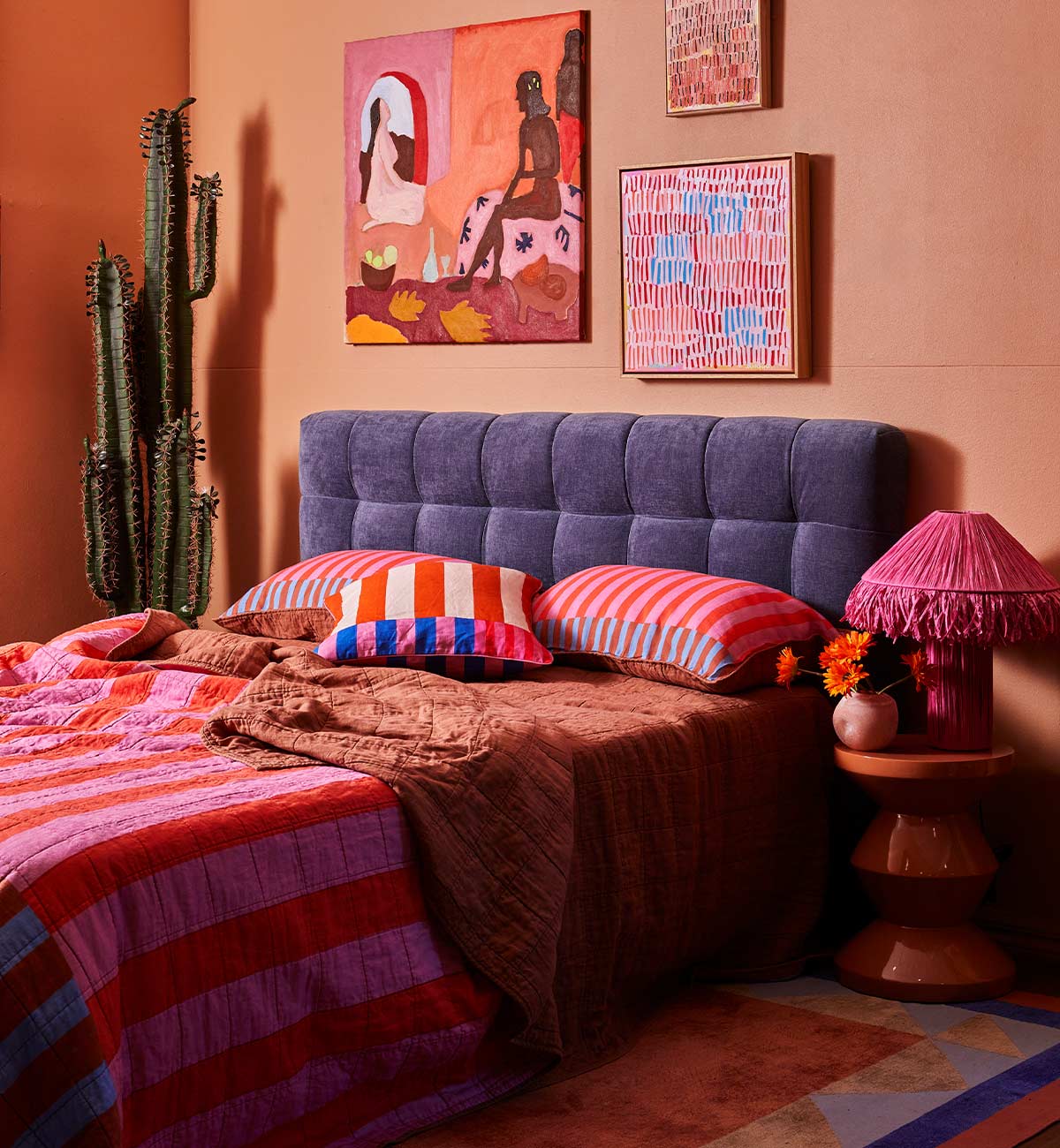 Bring the colour and warmth of Ola Mexicola into the bedroom with the Las Casas Reversible Bedspread. Featuring bold, sun-drenched stripes on one side and a grounding solid sunny hue on the other, it’s designed for easy style flips to suit your mood. Lightweight yet cosy, it’s perfect for year-round layering - adding a celebratory touch of pattern and colour to your sleep space. Available in Queen and King sizes. Designed to pair with the Las Casa Pillowcase set.