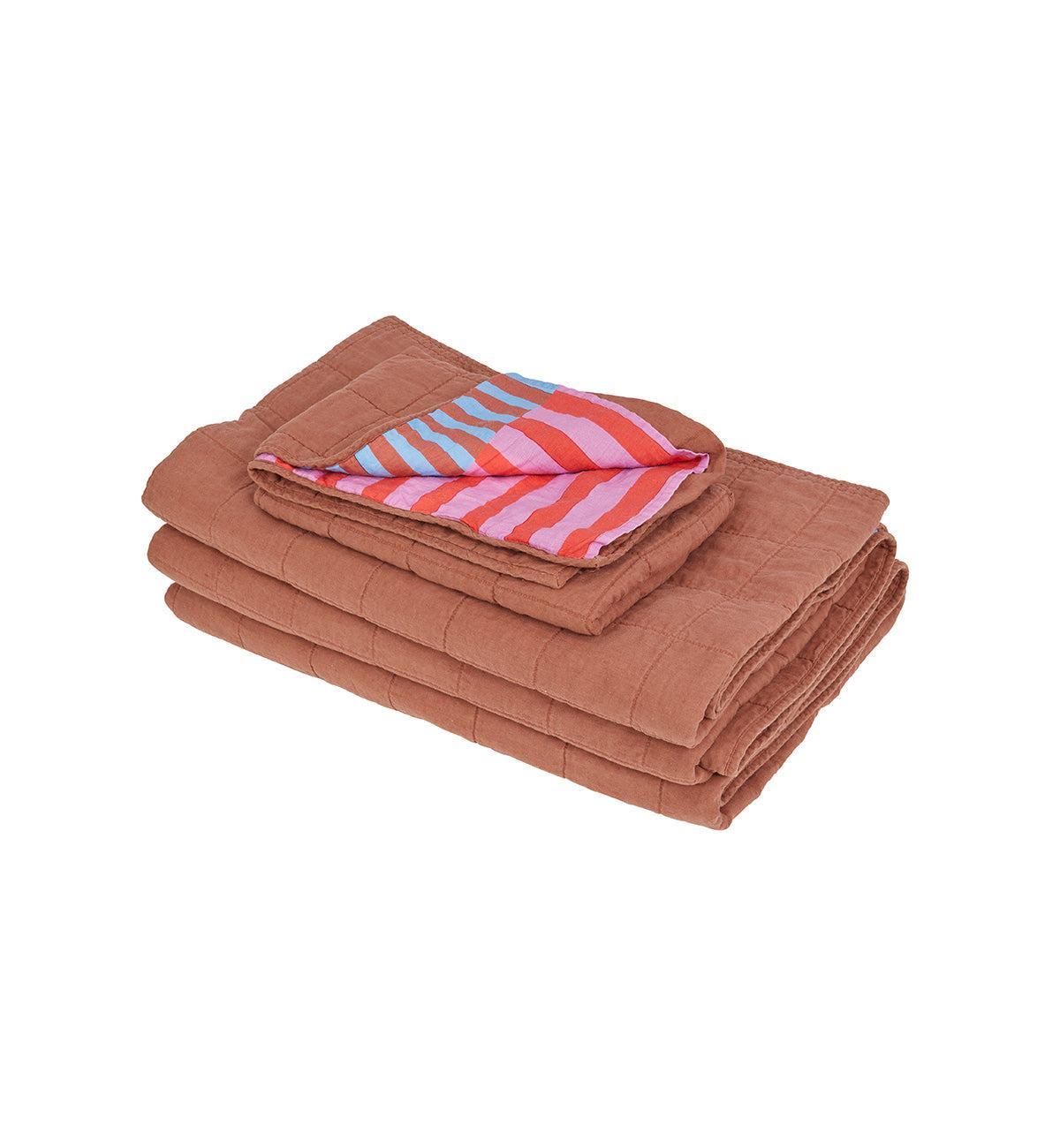 Bring the colour and warmth of Ola Mexicola into the bedroom with the Las Casas Reversible Quilt. Featuring bold, sun-drenched stripes on one side and a grounding solid sunny hue on the other, it’s designed for easy style flips to suit your mood. Lightweight yet cosy, it’s perfect for year-round layering - adding a celebratory touch of pattern and colour to your sleep space. Available in Queen and King sizes. Designed to pair with the Las Casa Pillowcase set.