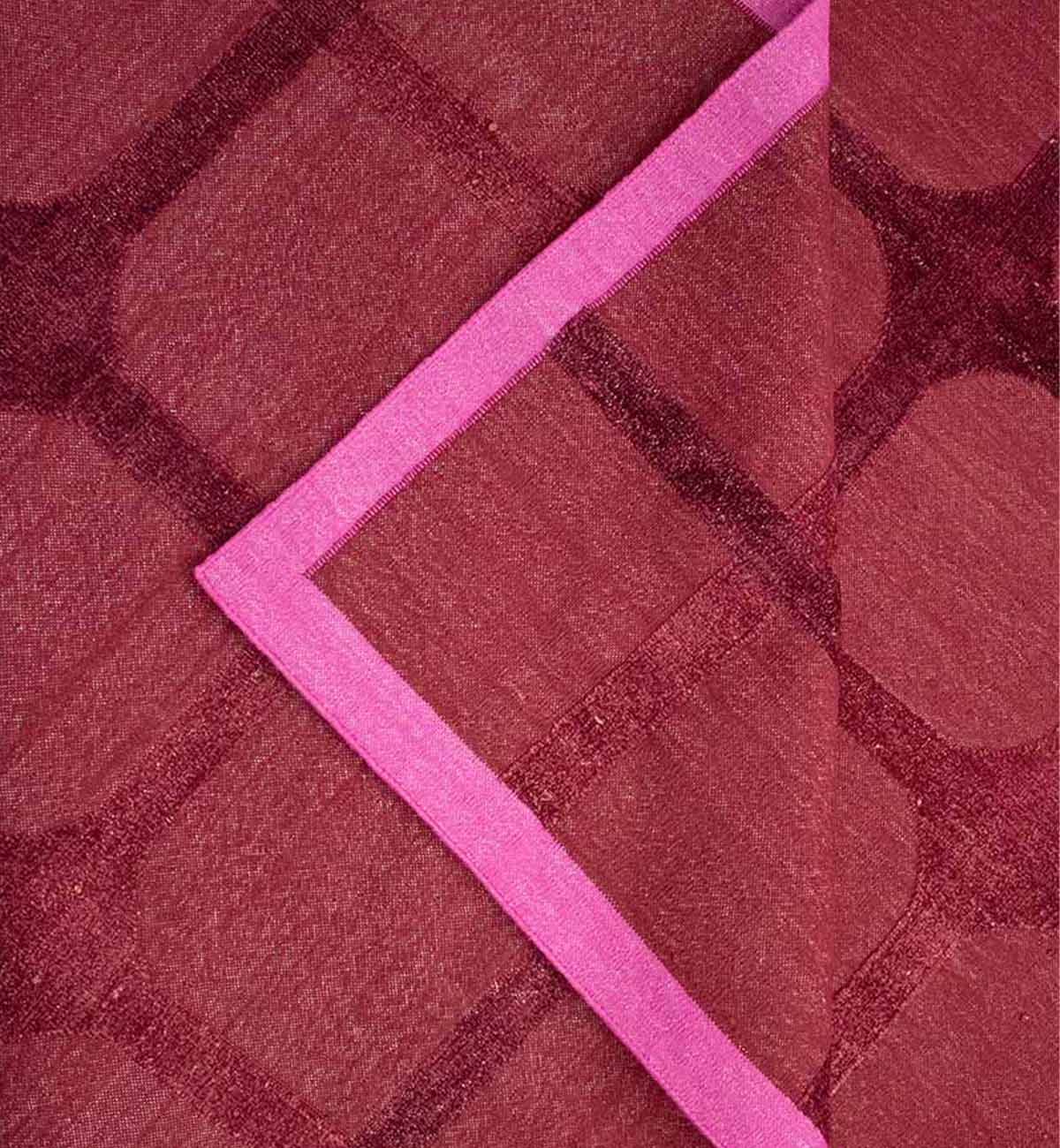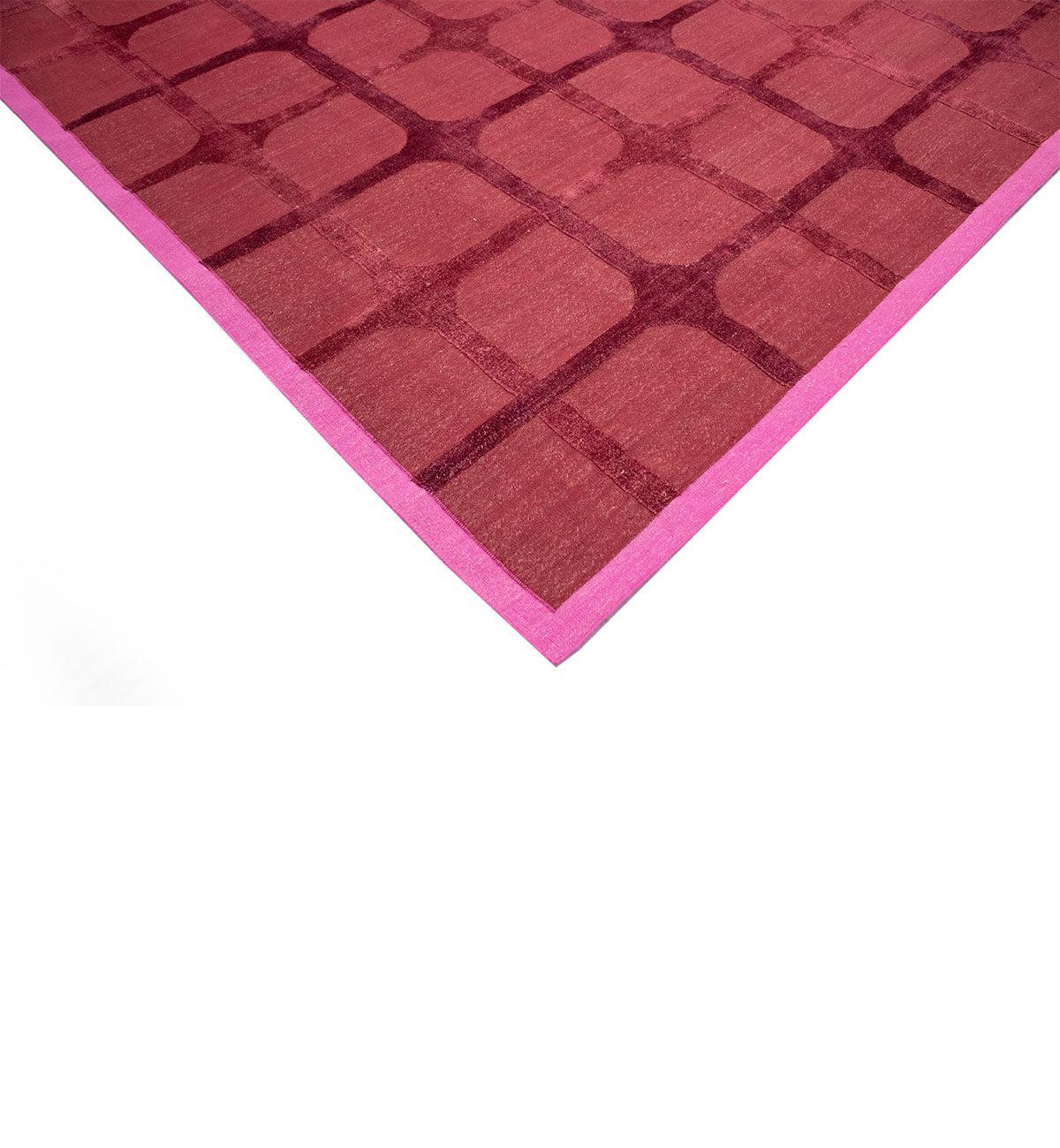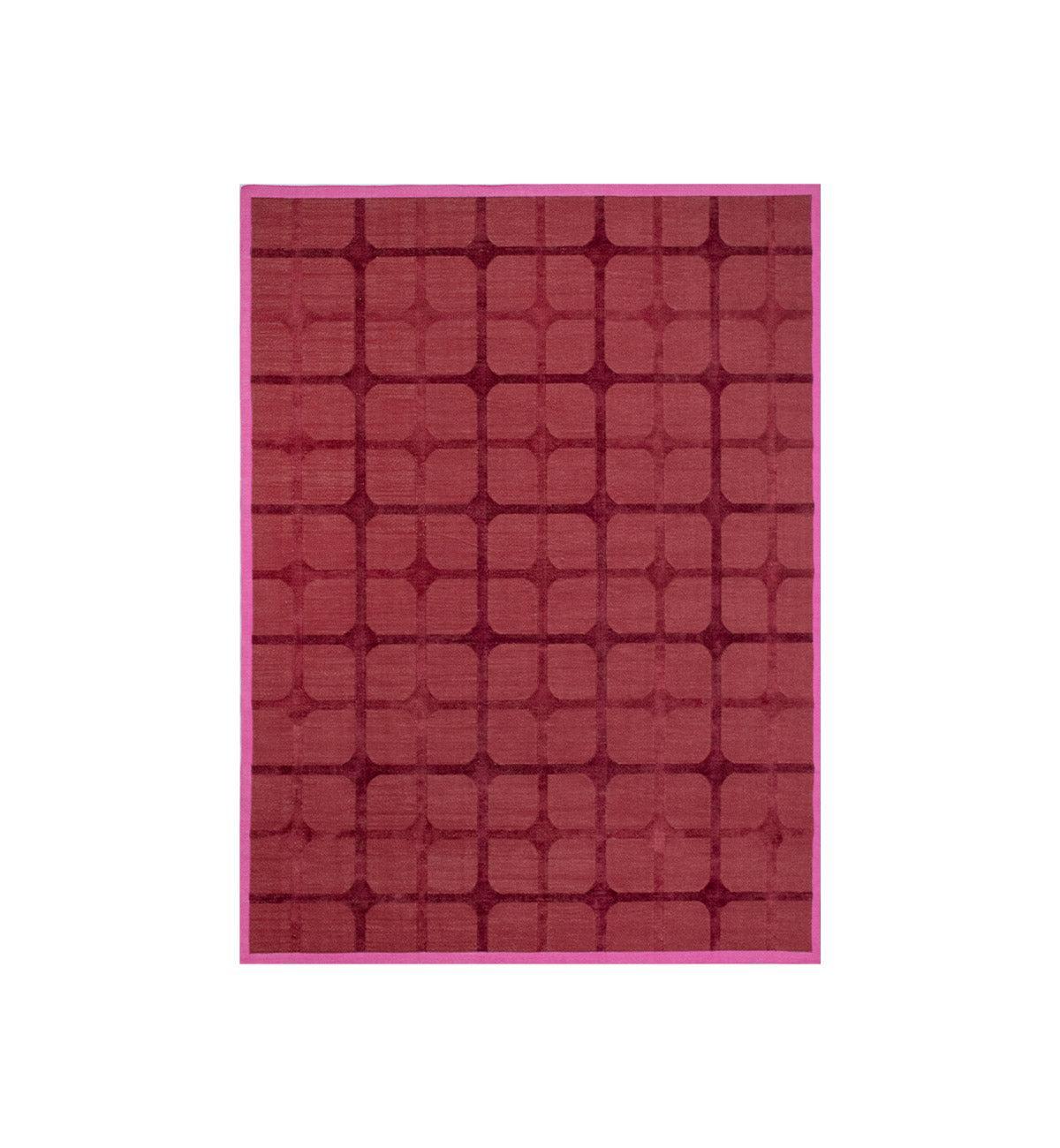 Sink into the saturated richness of the Den Dhurrie in Plum. Featuring a bold geometric grid softened by rounded edges, this statement rug balances structure with softness. Framed by a vibrant border, its design brings depth, rhythm, and a touch of play to any interior.