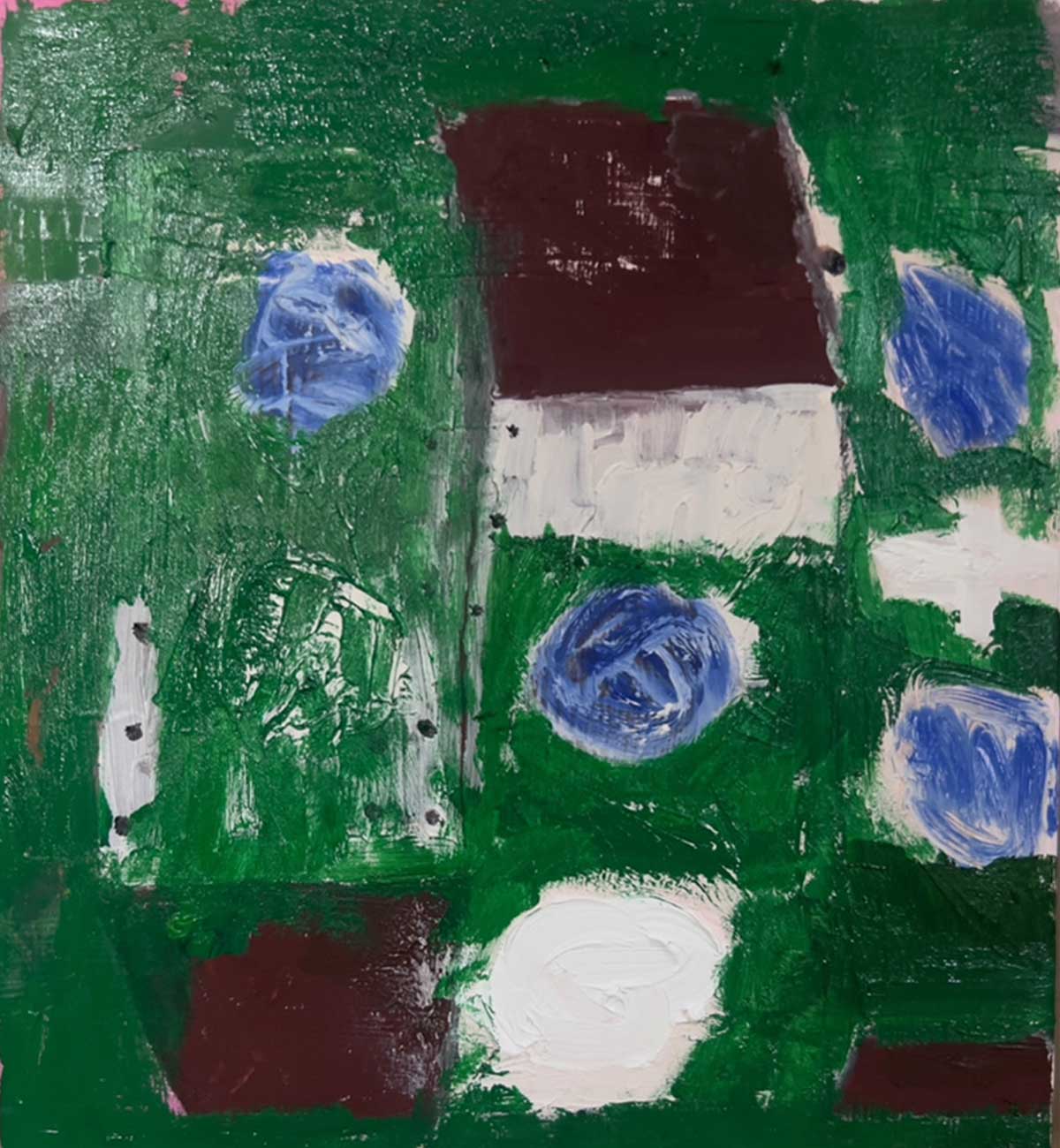 Tali’s transcendental paintings fuse symbology, folklore and natural elements that evoke a sense of what is felt but unseen. Tali’s intuitive process is marked by a layering technique, where some areas remain underworked, with translucent oil glazes revealing subtle details beneath, while other sections are built up with a buttery texture of oil and beeswax giving the work a tactile quality.