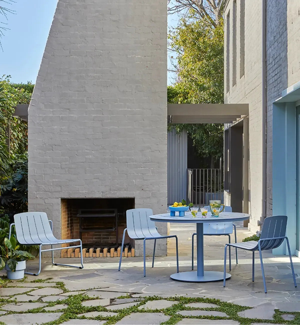 Constructed in all-weather aluminium and powder coated in a super fresh palette, this collection has been designed to mix or match and be stacked if needed.