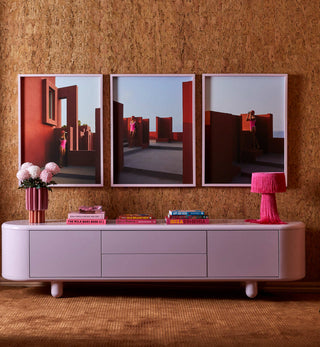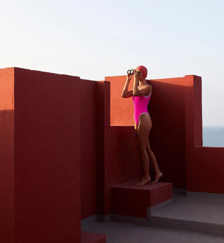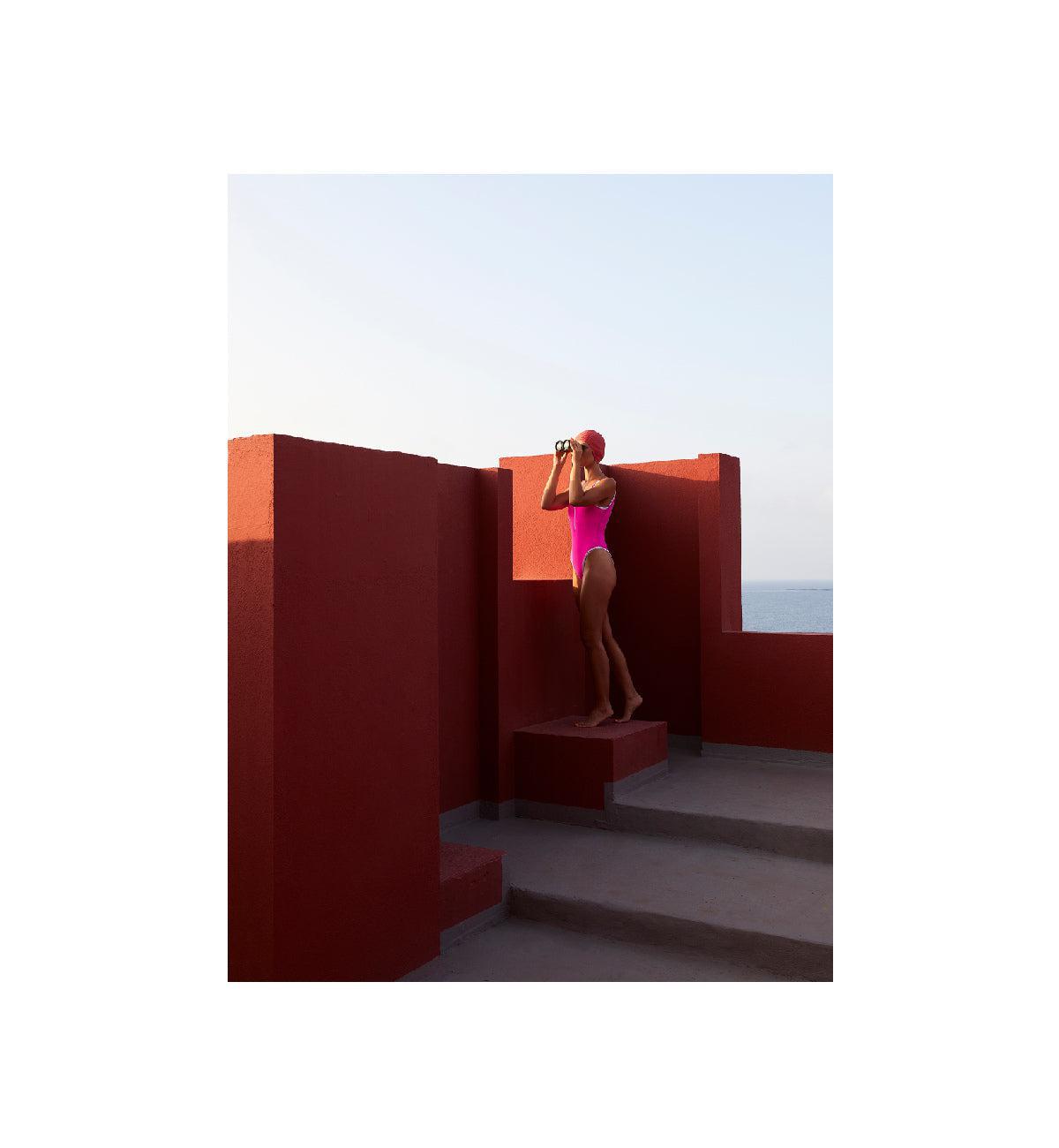 The Utopía series takes place at La Murralla Roja (the red wall), exploring the surreal shapes and bubbly colours of this Spanish icon which was designed by architect Ricardo Bofill in the 1970's.
