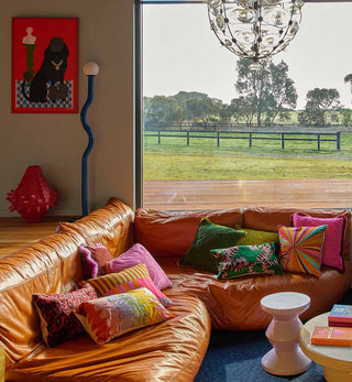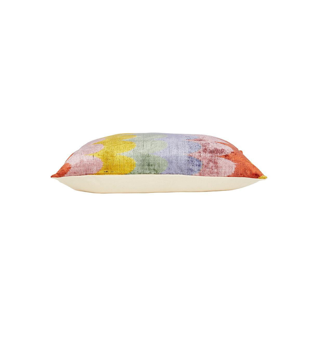 Using luxurious materials sourced in Turkey, the Zulta Cushion includes a handwoven, hand dyed silk velvet front and a high quality feather insert. Due to the handmade nature of this treasure, each cushion is truly unique and any imperfections should be celebrated.