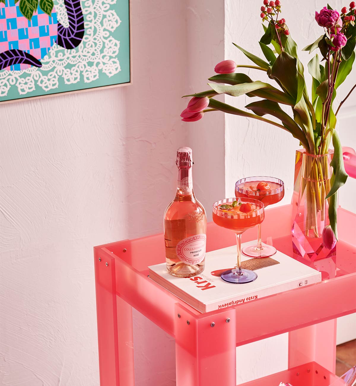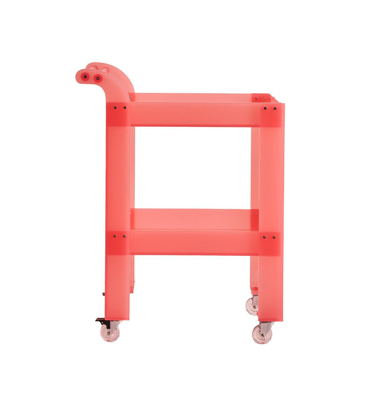 Say hello to our Pink Bar Cart. Transparent and glasslike, the barbie-pink hue and contemporary design is made from formed acrylic.