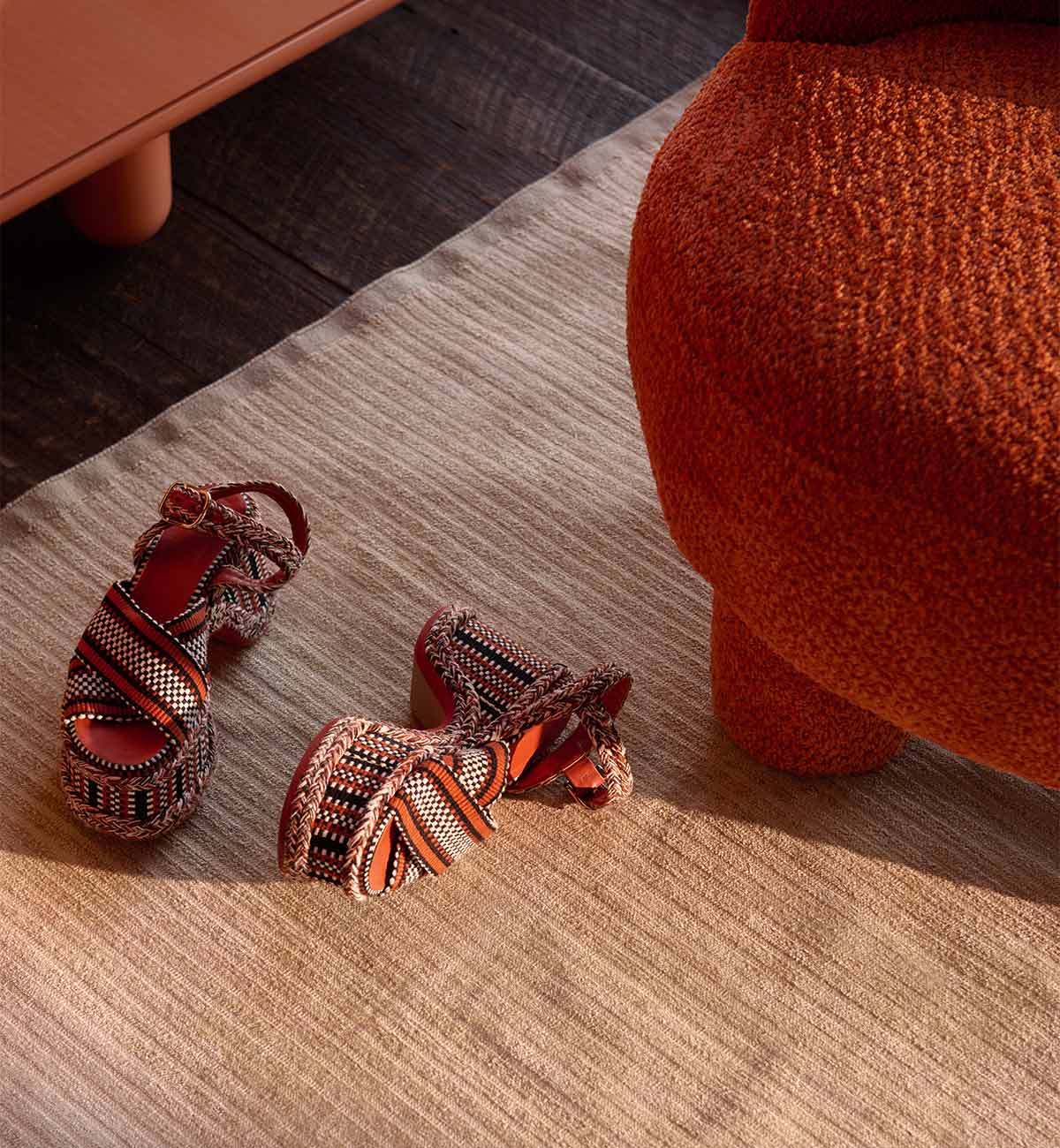 Curated with a sense of nostalgia, the blend of warmly hued tones, rich texture, luxe embellishments and bold shapes intend to invite year round sunshine into your space.