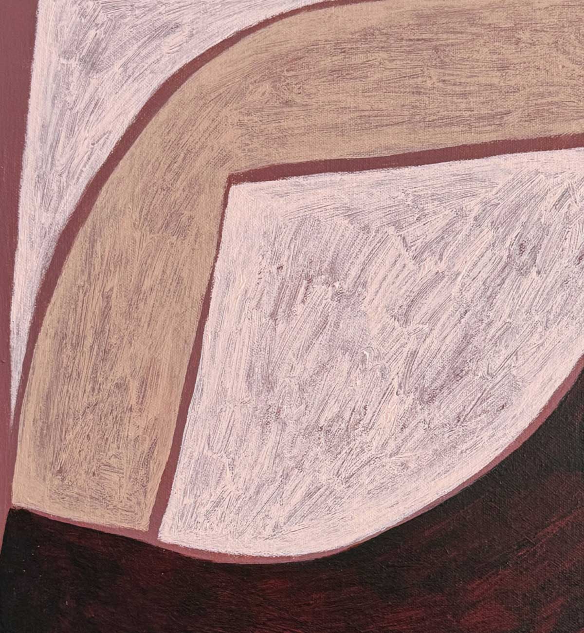 Rooted in earthy, raw and grounded colour palettes, Bradford’s practice explores space and shape through a mix of drawing, textiles, and mixed media. Her compositions are instinctive and emotive - where symbols of childhood to adulthood become visual anchors for memory, connection, and inner landscapes. Bradford’s work navigates the push and pull between stillness and movement, solitude and belonging. It’s art that feels lived-in - honest, physical, and quietly powerful.