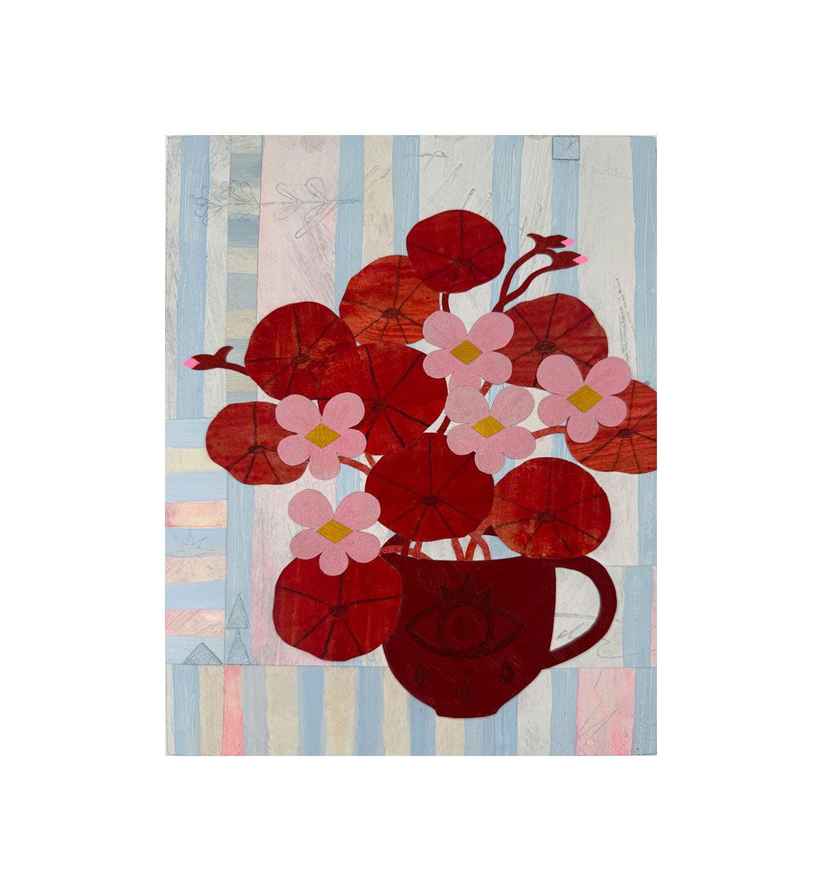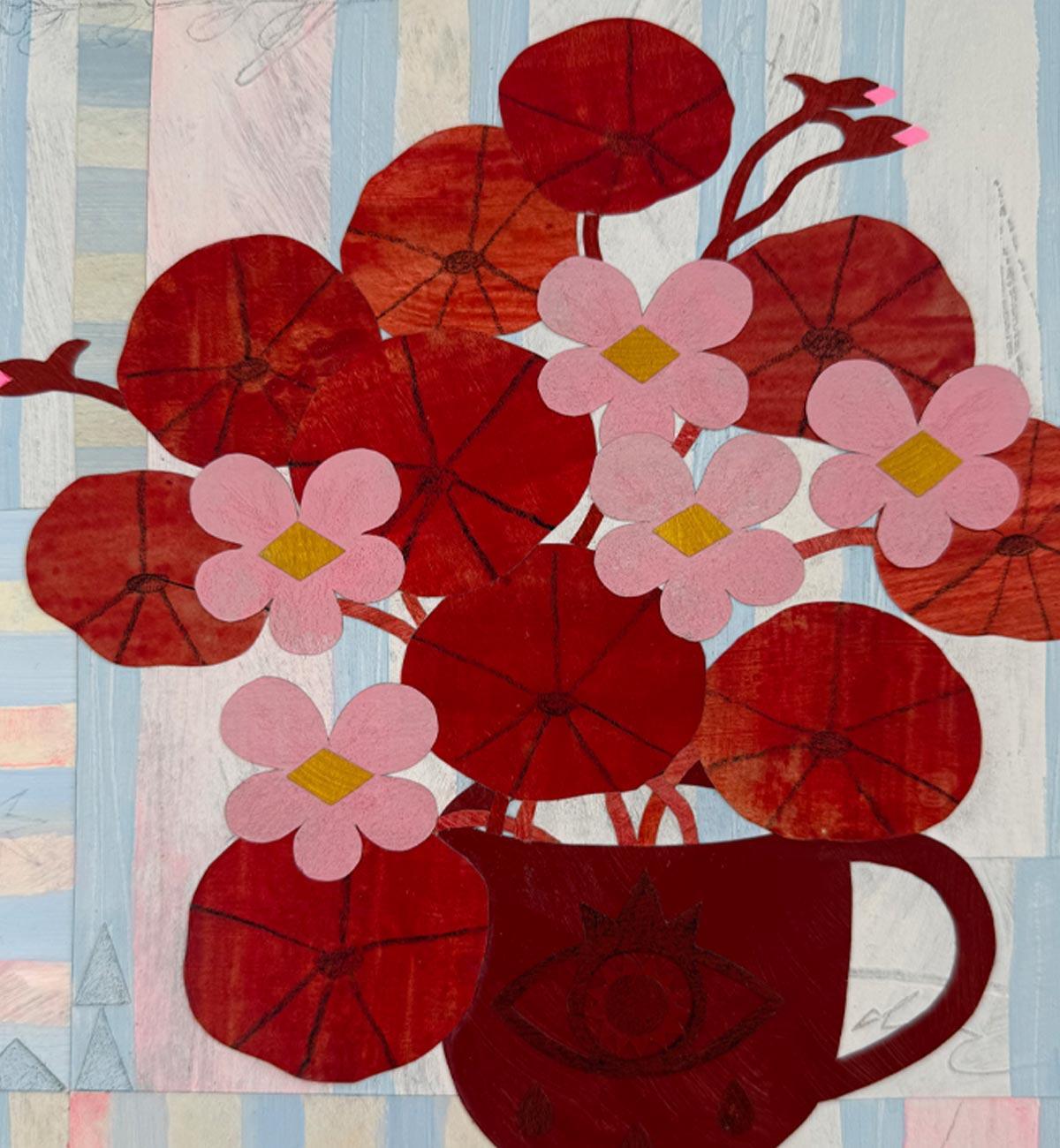 Merging scissors with paintbrush, Bianca combines her lifelong practice of skills to create work that possesses a characteristic sense of space with a highly textural hand, balancing both calm and playful qualities. Common themes in Bianca's work portray simplified tablescapes and botanicals with threads of folk symbolism.