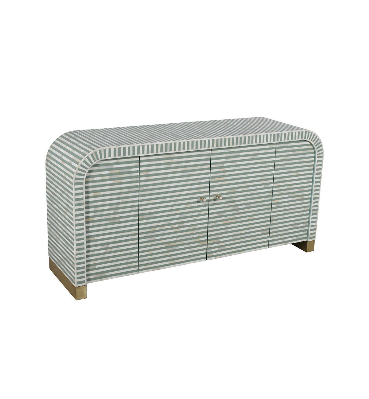 Curved, contemporary and elegant, our striped and shapely Bone Inlay Sideboard presents a fresh update to its more traditional predecessor.
