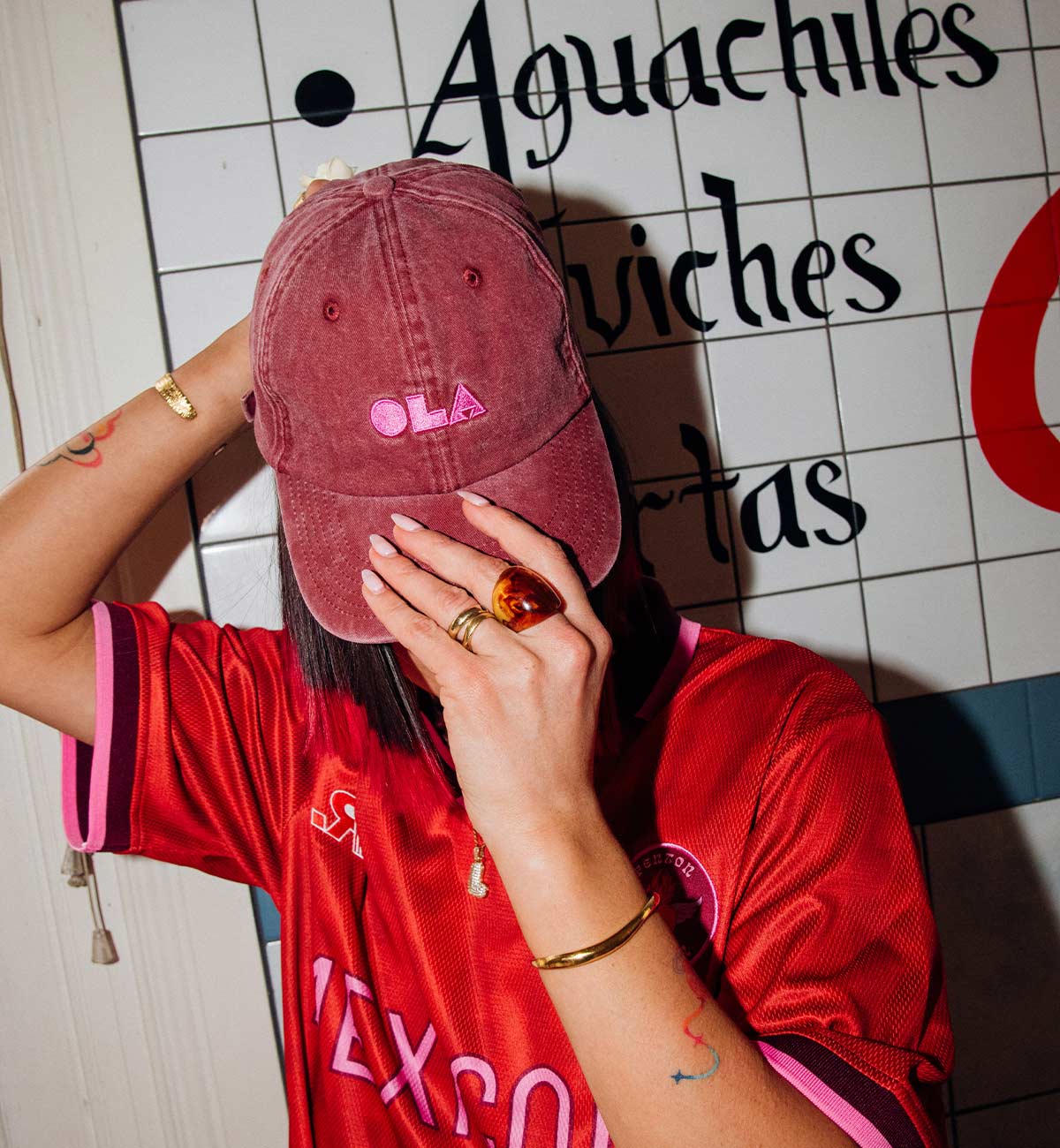 In the spirit of playful expression, our Ola Cap celebrates the vibrant energy of our Ola Mexicola collection. A classic sporty silhouette reimagined in rich burgundy with Ola embroidery - the perfect finishing touch for sun-drenched days, laid-back weekends, or dancing into the night.