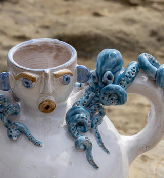 Meet 'La Polpess' - lovingly hand-crafted, painted and glazed by Sicilian Artist Patrizia Italiano, these one-off pieces have been designed as part of our Il Mediterraneo collection. Created to encourage you to slow down, indulge the senses and share connections and experiences with loved ones. Coastal references, oceanic colour and symbols synonymous with the sea combine to create a cheerful and sunny collection, designed to transport you to carefree and barefoot days by the sea.